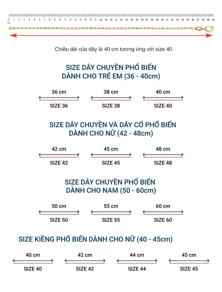 Một số độ dài dây chuyền/ dây cổ thông thường