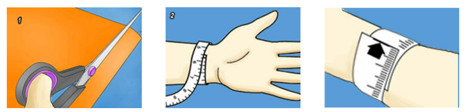 Bước 2: Dùng mảnh giấy (sợi dây/thước dây,…) quấn quanh cổ tay đeo vòng, bạn lưu ý quấn trừ hao sao cho kích cỡ thoải mái một chút, dùng bút đánh dấu hoặc kéo cắt điểm giao nhau của hai đầu.